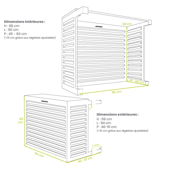 Decoclim kliimaseadme ja soojuspumba kate peidab välisseadme, vähendab müra ning sobib kõikidele mõõtudele. Kiire ja lihtne paigaldus.